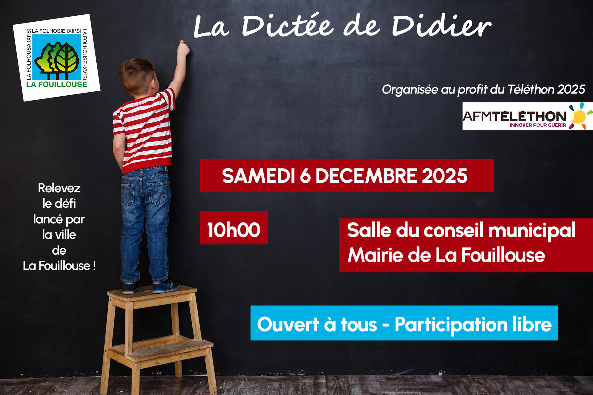 La ville de La Fouillouse vous invite à relever le défi en participant à une dictée solidaire au profit du Téléthon : La Dictée de Didier.